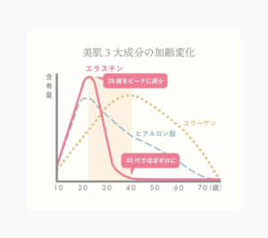そんな大切な役割を持つエラスチン、、、40代でほぼゼロになってしまうんです(ToT)